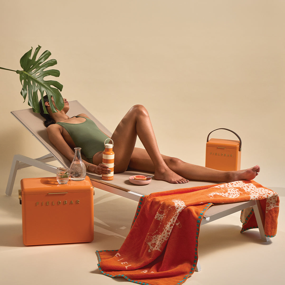 The ultimate FIELDBAR bundle includes a Drinks Box, Gin Trunk, Field Bottle and Seabed Beach & Bath Towel.